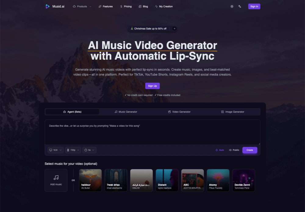 Musid.ai is a comprehensive AI music video generator designed to streamline the production of professional-grade content for social media platforms like TikTok, YouTube Shorts, and Instagram Reels. By integrating advanced AI engines for music composition, image generation, and video production, it allows users to transform simple text prompts into complete, beat-matched, and lip-synced music videos in minutes.